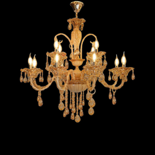بلور شفاف | لوستر آویزی چندشاخه | دارای شاخه های متعدد که از سقف آویزان می شود و نور را به صورت یکنواخت پخش می کند. مناسب برای فضا های بزرگ و لوکس. |
